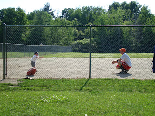 Doug plays softball every Monday night, and Doug wanted me to come watch the game with the kids. Garrett was so excited to "play" with Daddy!